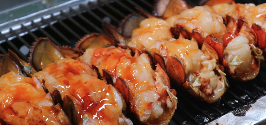 This indulgent snack features fresh lobster grilled to perfection and topped with melted cheese. It's a luxurious street food that offers a perfect blend of seafood and cheesy goodness.